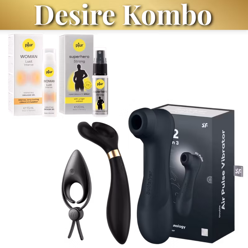 Desire Kombos är noggrant sammansatta paketerbjudanden där utvalda favoriter möts för att ge dig en ännu mer intensiv och lustfylld upplevelse. Varje kombo är skapad för att komplettera varandra perfekt – så att du kan utforska njutning på fler sätt, till ett fördelaktigt pris.